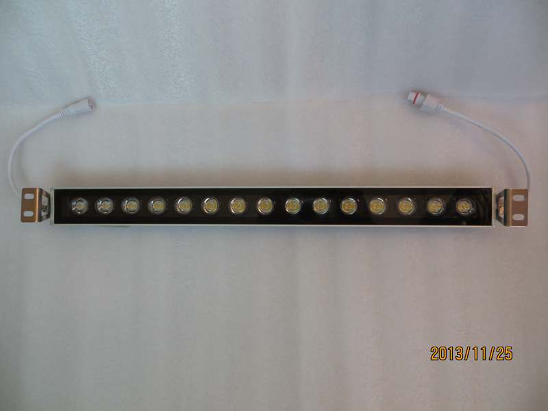 - Specifications:15W Ultra Thin LED Wallwasher, Ultra Thin 15W LED Wall WasherProduct Name: Ultra Thin LED Wall WasherProduct Number: LM-XQD-15W-11AConsumption Power: 15WColor for Choice: cool white, warm white, white, red, green, blue and RGB full colorProtection Level: IP67Input Voltage: AC 110/220VFrequency: 50~60HzLED Qty. 15PCS x 1W LEDBeam Angle: 15/30/45/60 degreeBeam Distance : 15 metersLED Chip: Bridgelux chipWorking Temperature: -20~40?Working Humidity: 10%~90%Storage Temperature: -20~40?Lifespan: over 50000 hoursMaterials: ALuminum AlloySize: 500*45*26mmNet Weight: 1.5kgCarton Quantity: 12pcs/CTNGross Weight: 288x 240x 260MMFeatures of Ultra Thin LED Wall Washer:1. Ultra Slim LED wall washer can work in independent mode and DMX mode, which can generate various color changing effects.2. Integrated heating solution to low the light decline of the LEDs, and guarantee lifespan of the lamp4. This light can also be used over a narrow area for dramatic effect, especially when several are used together or to cover large areas with strong impact.5. This Ultra thin linear led wall washer we usually adopt 15x1W Bridgelux LED chips as the light source.6. Optical systems of our linear led wall washer utilize an unique combination of reflective and refractive optical components.7. 12pcs high brightness LEDs create a bright wash of light.8. Lamps use PMMA optical lens, 15°30°45°60° lens are available, can achieve the best lighting effects.9. Lamp surfaces adopt tempered glass and silicone rubber seals, internal epoxy potting to ensure good waterproof the lights and protection grade IP66.10. It has smaller weight and stable quality and it is easy for maintance. Wall washers can be connected by 3-pin cable hand in hand, so very easy for installation.Application:1. Wall reflecting light on many occasions, such as KTV, pub, building, park and so on2. Indoor lighting in franchise house and shopping mall3. Decoration in the place of entertainment, bar, coffee house4. Lighting in museum, art gallery5. Stage lighting in commercial theatre, auditorium6. Lighting in hotel7. Lighting in meeting room and multi-function room8. Lighting in exhibition and fashion show9. Lighting in living room and home theatre