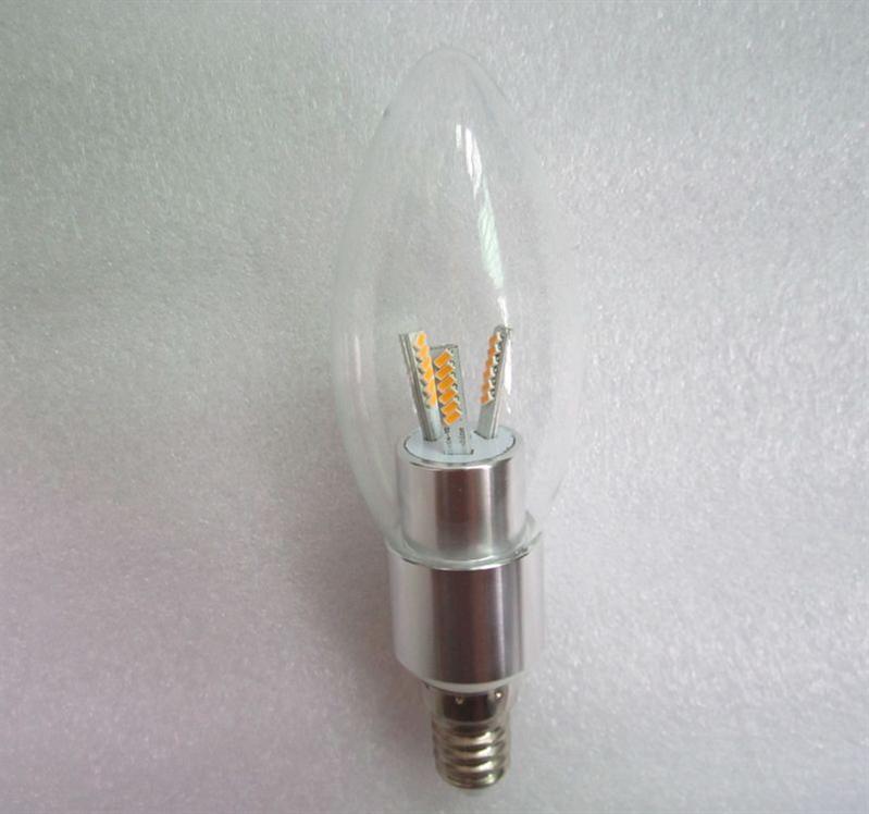 Lumen: 270-290LmVoltage: 200-240VACColor Temp: 2700K/3000K/6500KGlass Cover: Clear/ Frosted coverPF: >0.9Ra: >75Base: E14Main Material: Aluminum & GlassLifespan: 50000hrsDimension: 116x 37mmNet weight: 65gCertificate: CE, RoHSDimmable version is avalaible with this typeAdvantages:1. Unique in global market!2. Used in Chandeliers and very beautiful!3. Sparkle and Flame light effects.4. Only 3Watts but identical to 25Watts incandescent bulbs.5. Little heat,little power,and more comfortable!
